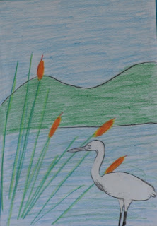 | 62 - Garça-branca-grande. desenho e lápis de cor |